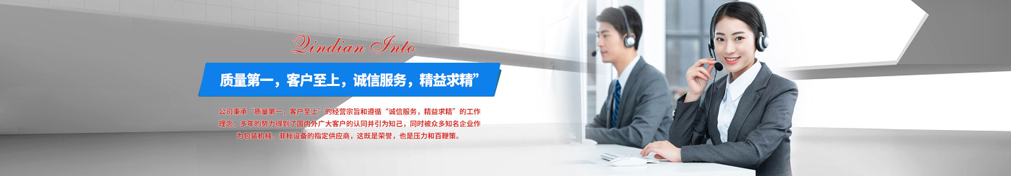 公司秉承“質(zhì)量為本,客戶至上”的經(jīng)營宗旨和遵循“誠信服務(wù),精益求精”的工作理念,多年的努力擁有了國內(nèi)外廣大客戶的認同并引為知己,同時被眾多知名企業(yè)作為包裝機械、非標(biāo)設(shè)備的指定供應(yīng)商,這既是榮譽,也是壓力和百鞭策 在此,我們對新老客戶表示衷心的感謝,在今后漫長的歲月里歡迎您隨時來人,來電,來函垂詢洽購,我們愿真誠為你提供盡善盡美的服務(wù)。