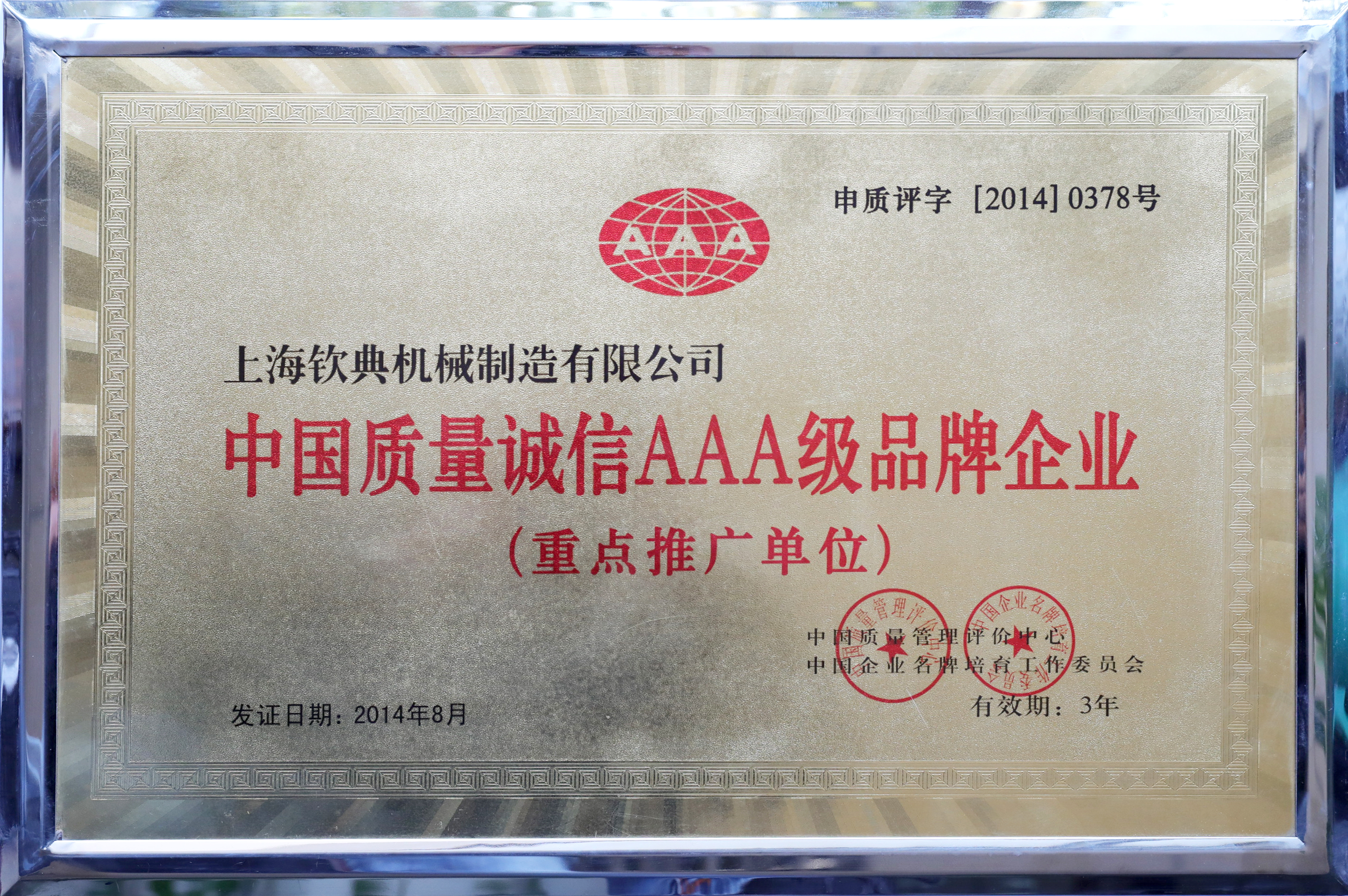 中國質(zhì)量誠信AAA級品牌企業(yè)